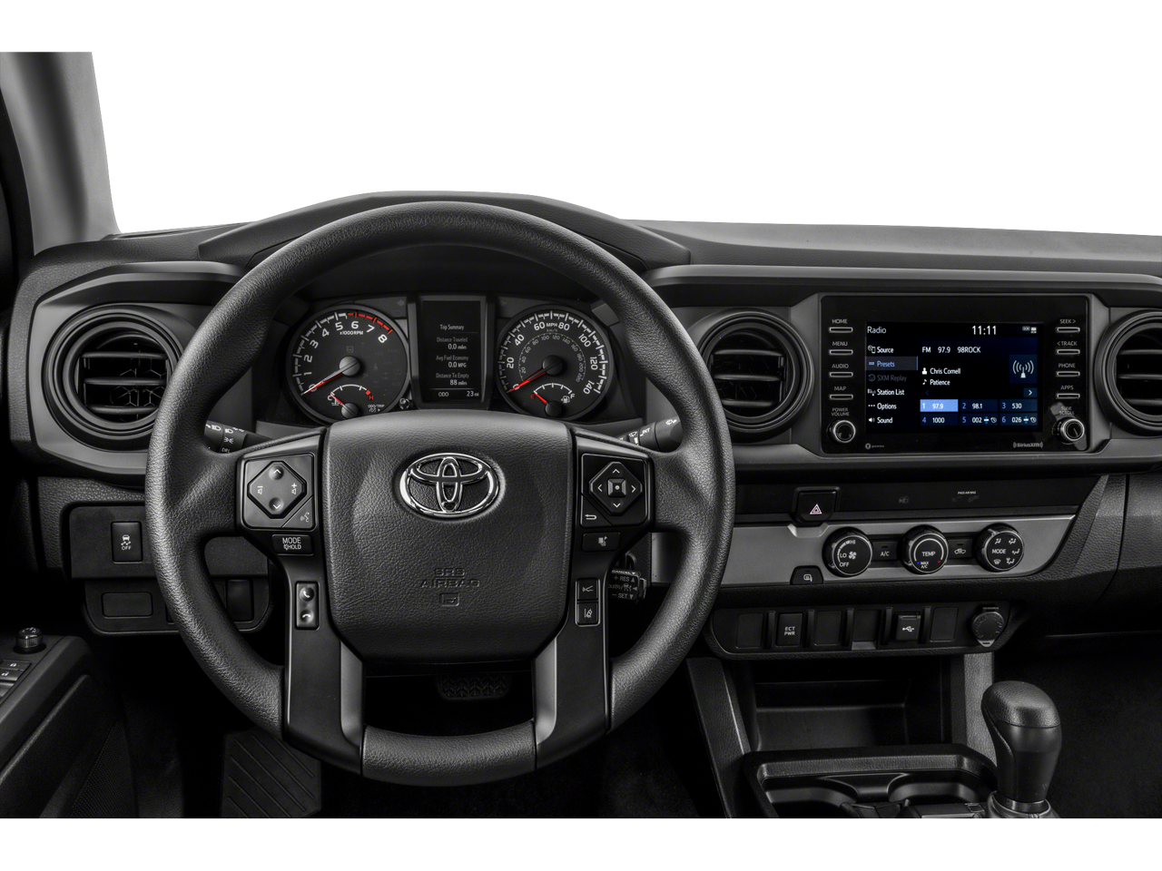 This 2022 Celestial Silver Metallic Toyota Tacoma SR5 4WD is well equipped and includes these features and benefits: Technology Package (Blind Spot Monitor w/Rear Cross Traffic Alert), Tacoma SR5 V6, 4D Double Cab, 3.5L V6 PDI DOHC 24V LEV3-ULEV70 278hp, 6-Speed Automatic, 4WD, Cement w/Fabric Seat Trim (FB), ABS brakes, Active Cruise Control, Alloy wheels, Electronic Stability Control, Front dual zone A/C, Illuminated entry, Low tire pressure warning, Remote keyless entry, Traction control, 6 Speakers, Air Conditioning, AM/FM radio: SiriusXM, Anti-whiplash front head restraints, Apple CarPlay/Android Auto, Auto High-beam Headlights, Auto-dimming Rear-View mirror, Automatic temperature control, Axle Ratio: 3.91, Bar Gray Ring Chrome Front Grille, Brake assist, Bumpers: body-color, Color-Keyed Overfenders, Daytime Running Lamps, Driver door bin, Dual front impact airbags, Dual front side impact airbags, Emergency communication system: Safety Connect with 1-year trial, Exterior Parking Camera Rear, Fabric Seat Trim (FC), Front anti-roll bar, Front Bucket Seats, Front Center Armrest, Front Fog Lamps, Front fog lights, Front reading lights, Front Seats, Front wheel independent suspension, Knee airbag, Occupant sensing airbag, Outside temperature display, Overhead airbag, Overhead console, Panic alarm, Passenger door bin, Power door mirrors, Power driver seat, Power Sliding Rear Window w/Privacy Glass, Power steering, Power windows, Radio: AM/FM Radio, Rear step bumper, Speed control, Speed-sensing steering, Split folding rear seat, Steering wheel mounted audio controls, Tachometer, Telescoping steering wheel, Tilt steering wheel, Trip computer, Variably intermittent wipers, and Wheels: 16 x 7J Silver Alloy. Tacoma SR5 V6, 4D Double Cab, 3.5L V6 PDI DOHC 24V LEV3-ULEV70 278hp, 6-Speed Automatic, 4WD, Cement w/Fabric Seat Trim (FB), Android Auto/Apple CarPlay, Bluetooth®, Backup Camera, Local Trade!, Bed Liner, XM Radio, ***ONE OWNER!!!, Technology Package, ABS brakes, Active Cruise Control, Alloy wheels, Blind Spot Monitor w/Rear Cross Traffic Alert, Electronic Stability Control, Front dual zone A/C, Illuminated entry, Low tire pressure warning, Remote keyless entry, Technology Package, Traction control.